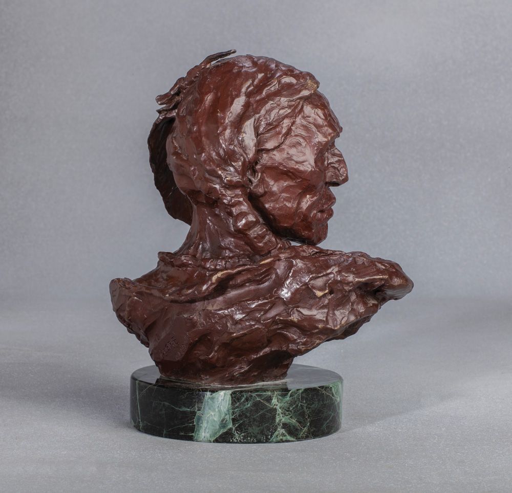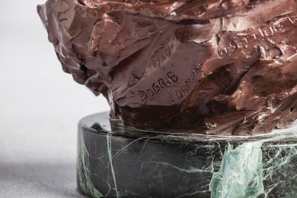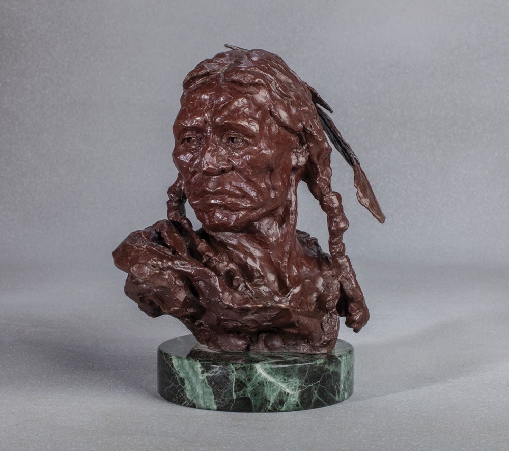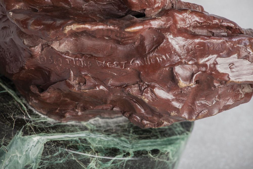Harley Brown CAA (b. 1939). DOGRIB. Bronze. 11 1/4" x 11" x 7 1/2". (plus 1 3/4" marble base). Signed and titled in bronze, 3/AC. (c) Settlers West Galleries Inc. 1981
