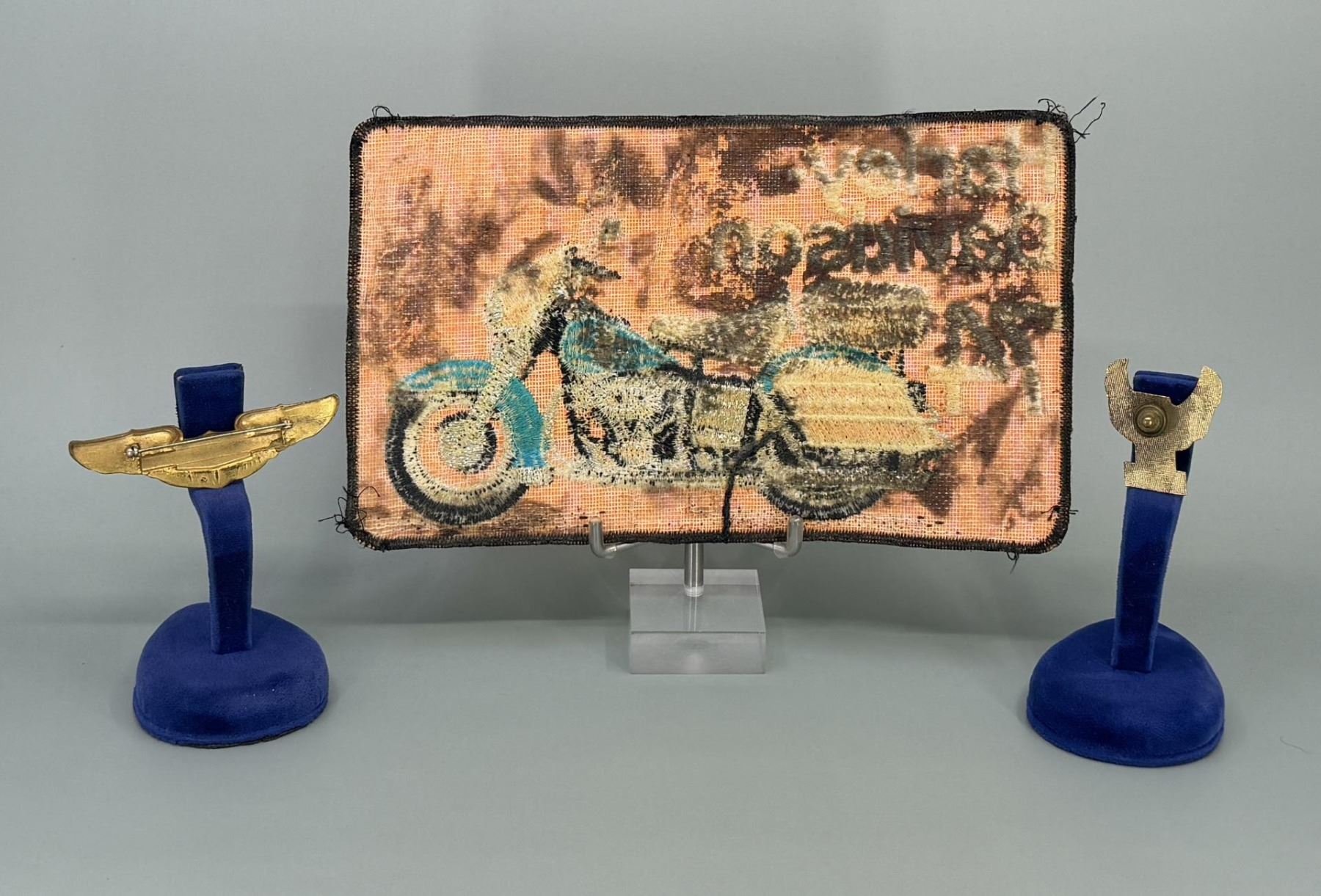 3" set of wings. AMF Winged Hat Pin, and 1974 Patch.