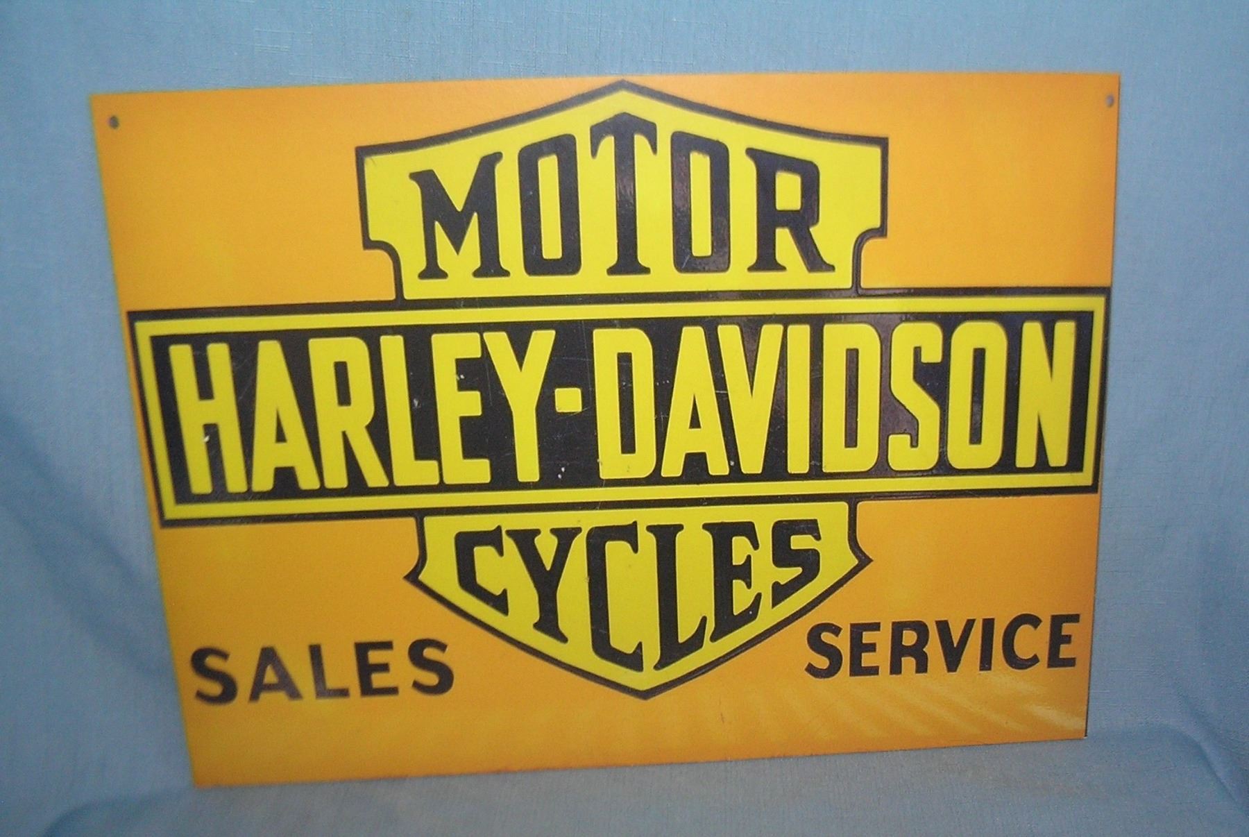 Harley Davidson Motorcycles sales and service retro style advertising sign printed on PVC hard board these signs are auctioned for there decorative and display purposes 12 by 16 est. value $50.00-$60.00