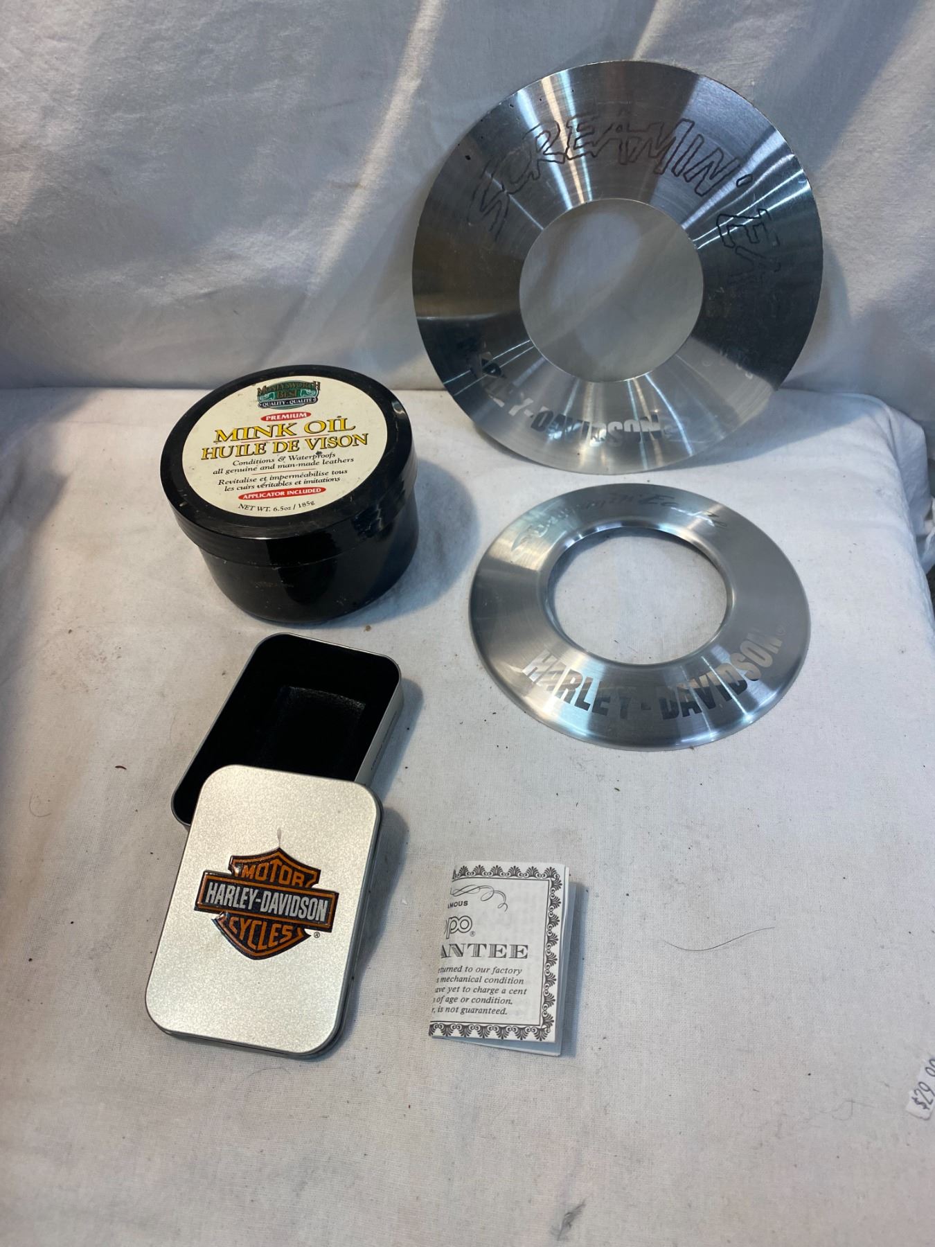 Harley Davidson items and mink oil