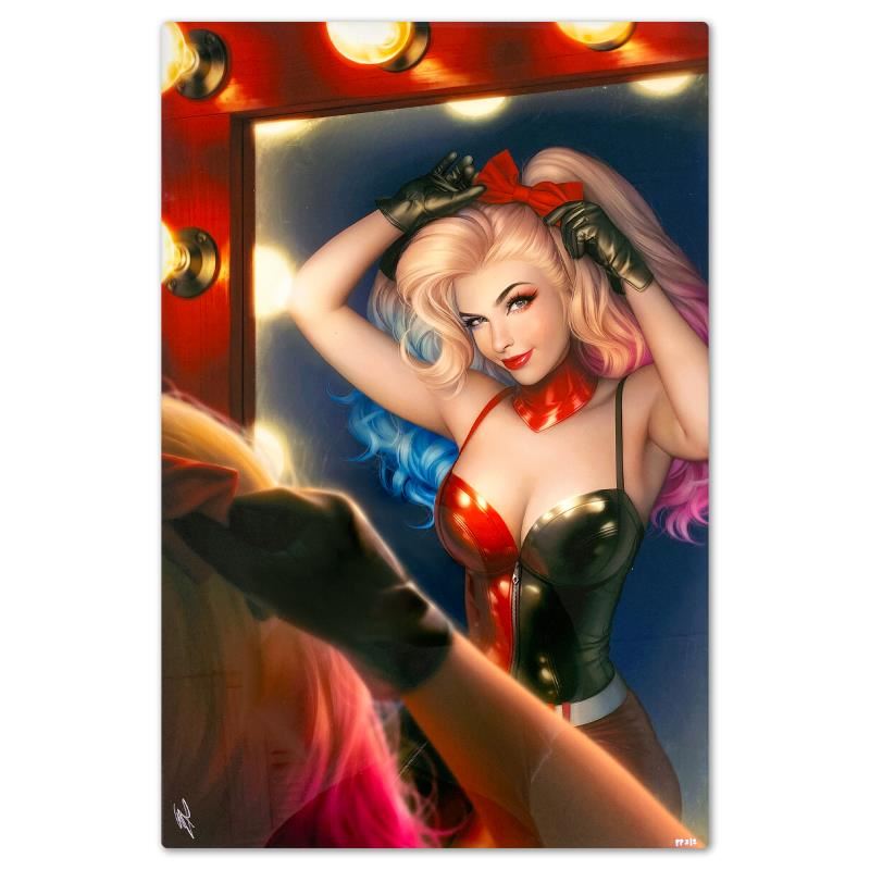 "Harley Quinn #1" is a limited edition giclee on aluminum from DC Comics and Warren Louw, PP numbered 2/2 and bearing the authorized signature of the artist. Includes Letter of Authenticity. Measures approx. 24" x 16" (image).