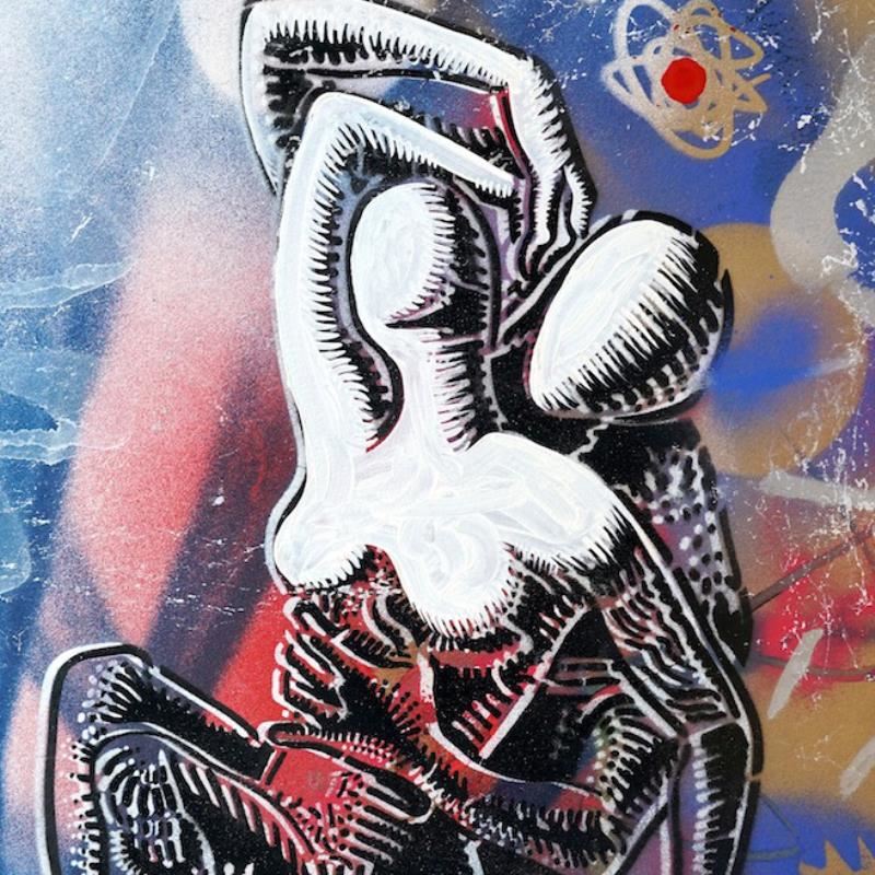 "Harmonic Convergence" is a mixed media original painting on paper, by Mark Kostabi. The piece is hand signed and comes with a certificate of authenticity. Measures approximately 42" x 29.5".