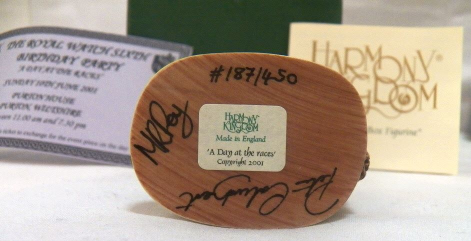 A Day at the Races 187/450 Artist: Peter Calvesbert Item No: RW01LEHIMA Made In: England Status: Event Carving Date: 2001 Release Date: 3/26/2001 In Store Date: Retirement Date: 6/10/2001 Edition Size: 450