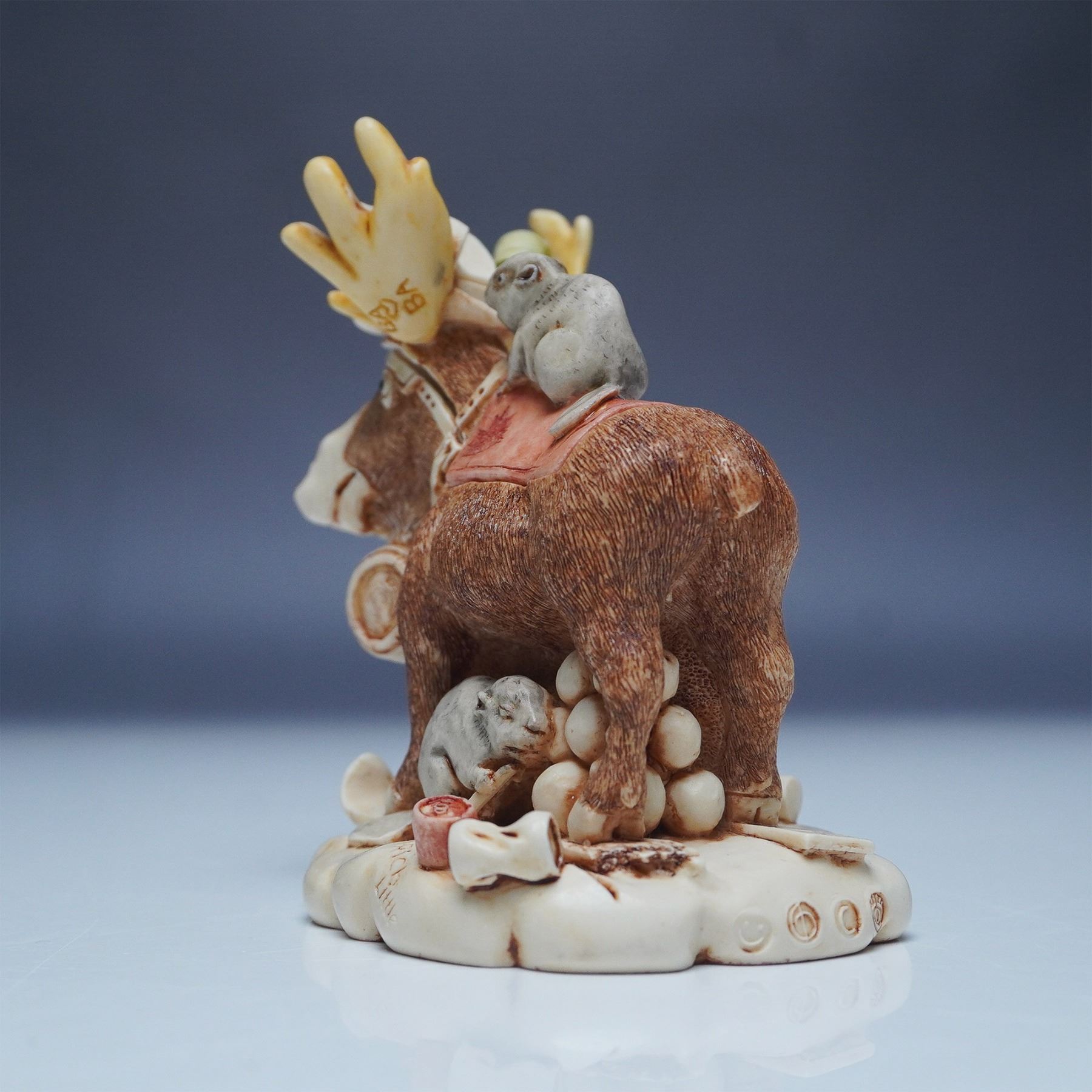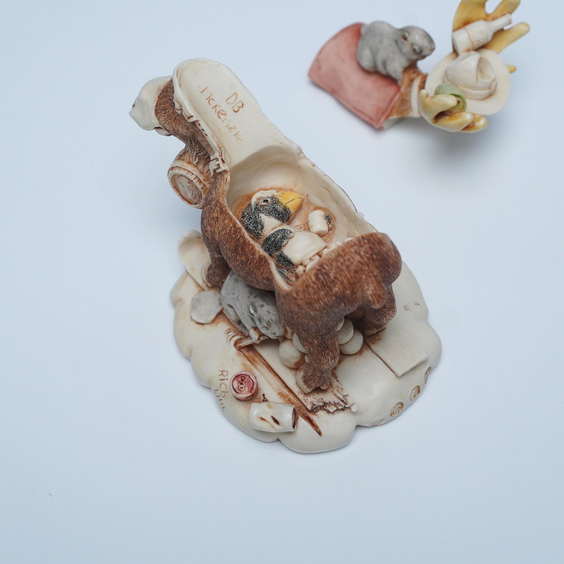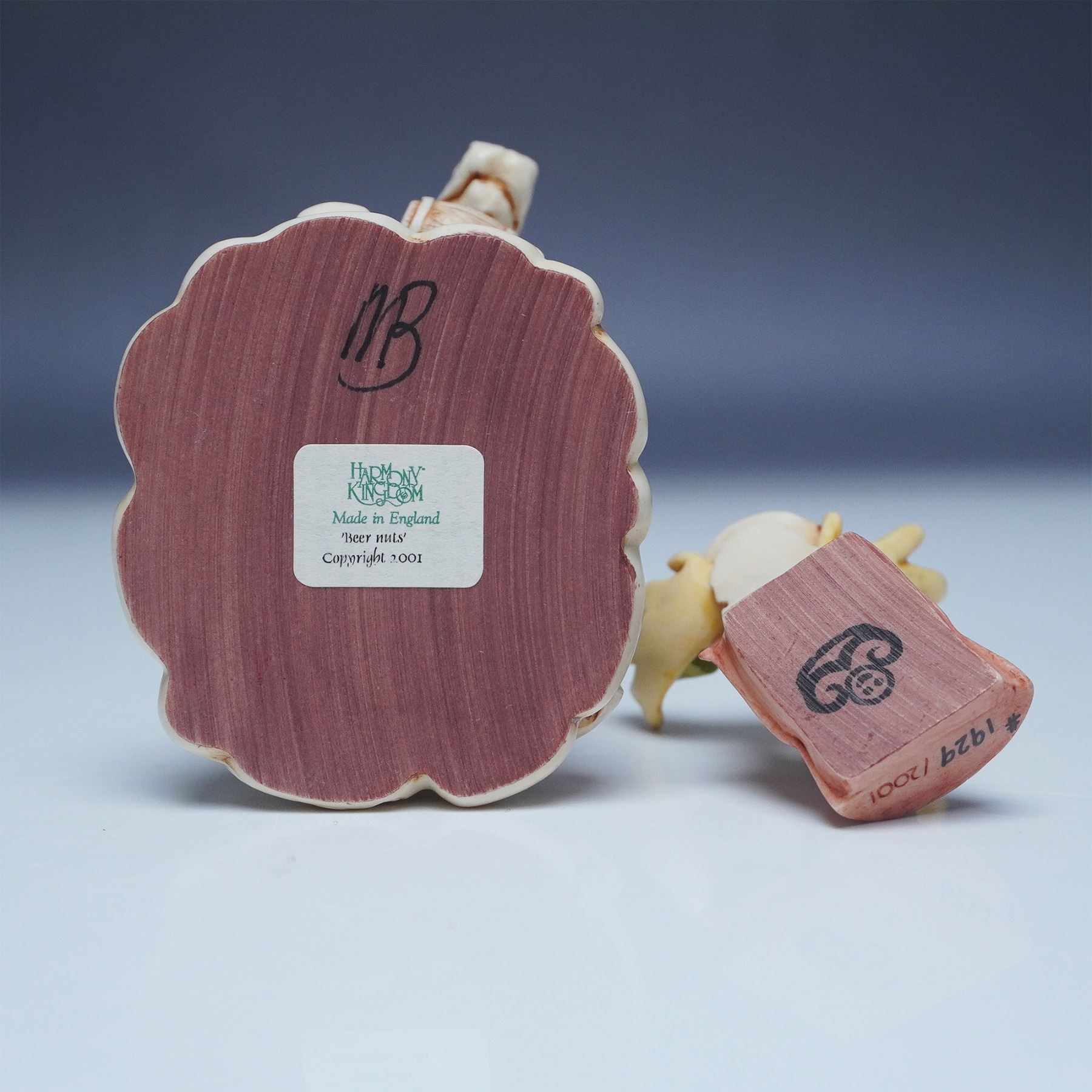 This is a limited edition Harmony Kingdom box figurine titled Beer Nuts, crafted in England and copyrighted in 2001. This whimsical piece features a moose adorned with camping gear, accompanied by playful critters, showcasing Harmony Kingdom's signature attention to detail and charm. The figurine opens to reveal a hidden compartment, a hallmark of the brand's collectible box figurines. This limited edition piece includes its original box and certificate, enhancing its value to collectors.