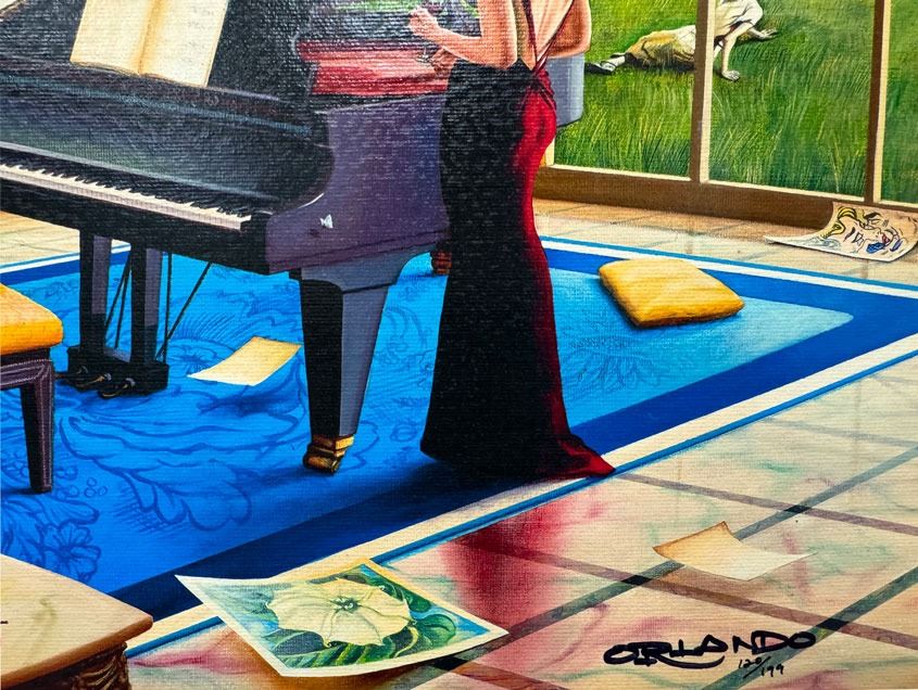 Bright beautiful collectible imited edition giclee on canvas, signed and numbered. This artwork comes beautifully framed and ready to hang. Art size 31x22 inches.