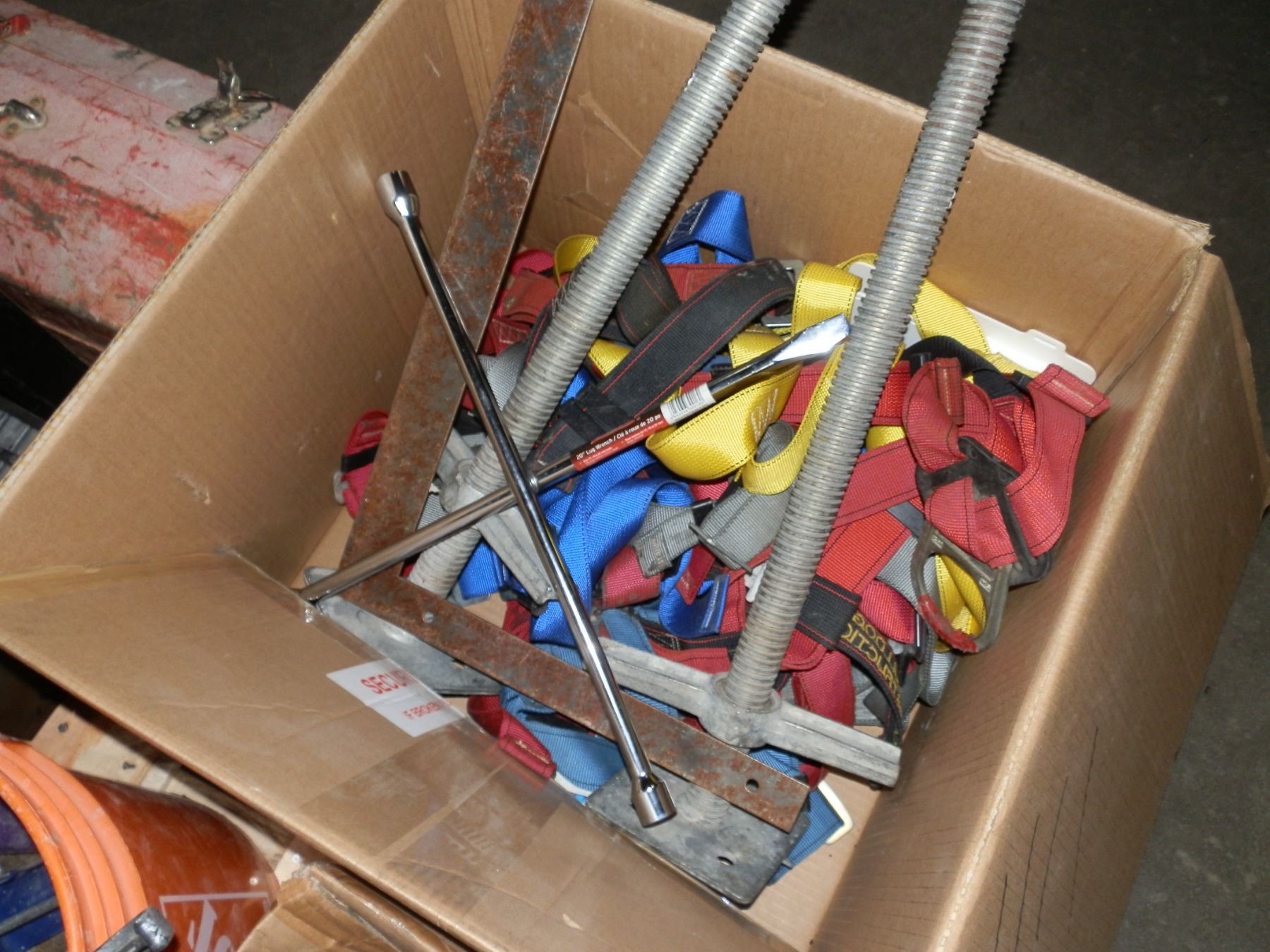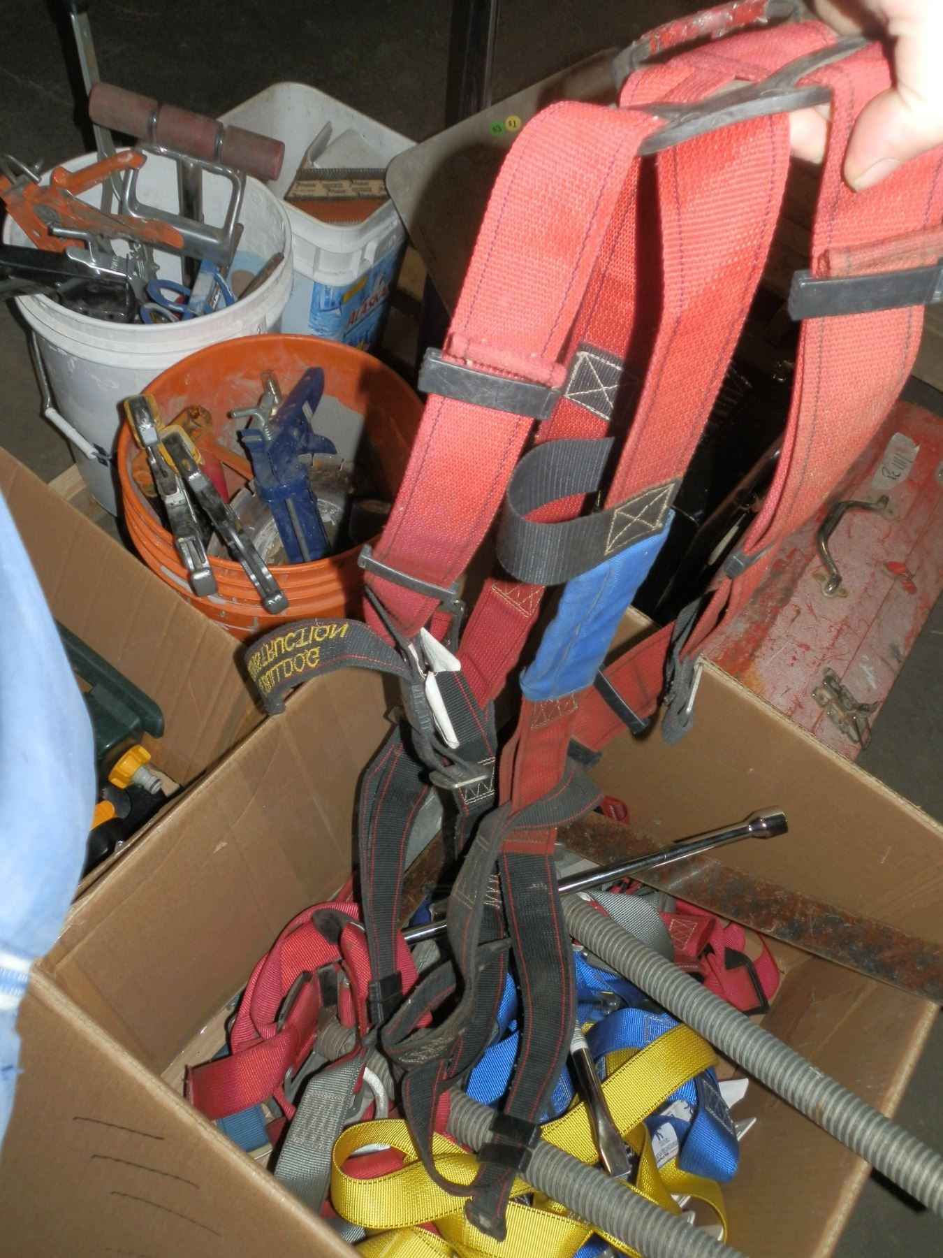 you get lots of safety harness in this lot plus some a couple screw jacks and a dry wall square...used