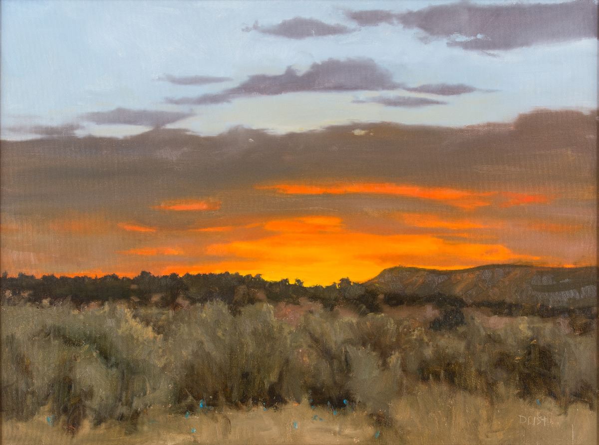 Harold Deist. Quiet Sunset. 30" x 40" oil on canvas. Signed lower right. Verso: Titled on stretcher bar.