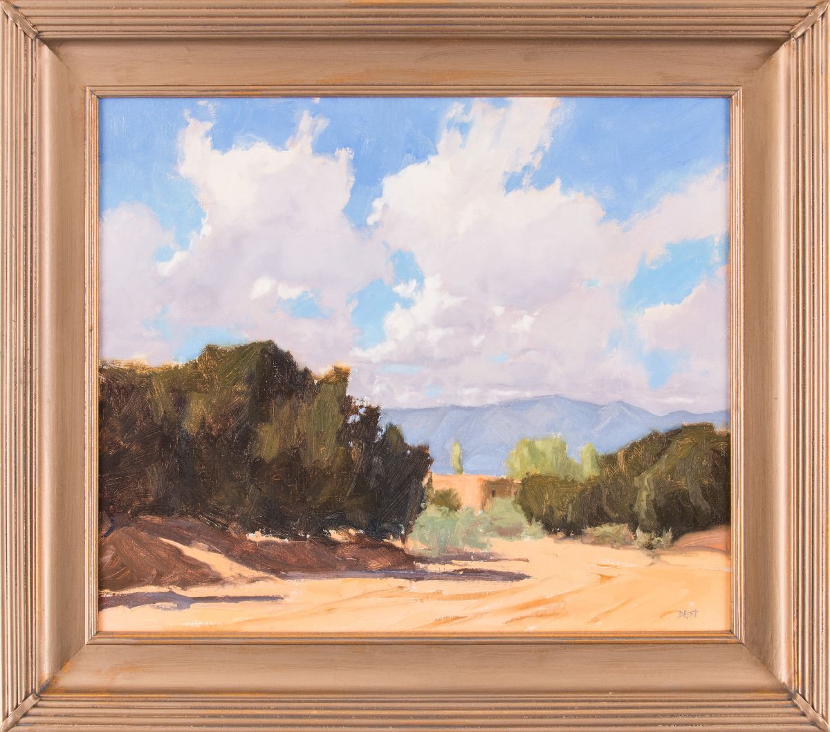 Harold Deist. East of Santa Fe. 20" x 24" oil on canvasboard. Signed lower right. Verso: Titled and dated '99.