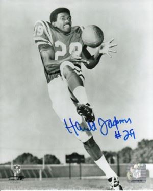 Harold Jackson quickly emerged as one of the top receivers in the NFL, finishing the 1969 season with 65 receptions for a league-best 1,116 yards and 9 touchdowns. During his years with the Eagles, Jackson led the NFL in receptions in 1972 and in receiving yardage in both 1969 and 1972. Harold Jackson has hand autographed this Philadelphia Eagles 8x10 Photo. Certificate of Authenticity from Athlon Sports.