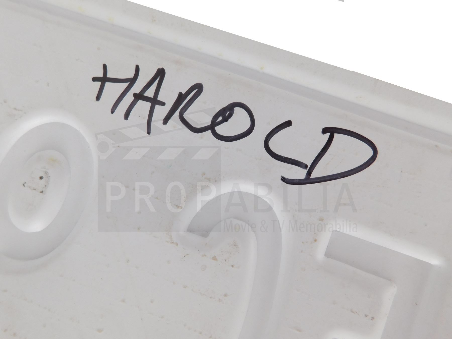 Propabilia guarantees the attribution of each lot of Property as stated in the title block of that lot of Property in the Auction catalogue, each lot of property comes with its own Certificate of Authenticity (COA). Bidders should be aware that multiple examples of props and costumes are frequently used during production (hence the Propmasters saying 'one and done'), usually as few as 3 or as many as 6 or more pieces may be used to represent the item on screen. It is often impossible to determine whether a specific piece has been used on-camera. Any specific details about the property known to Propabilia will be noted within the description, but no warranties are given by Propabilia as to that description.
