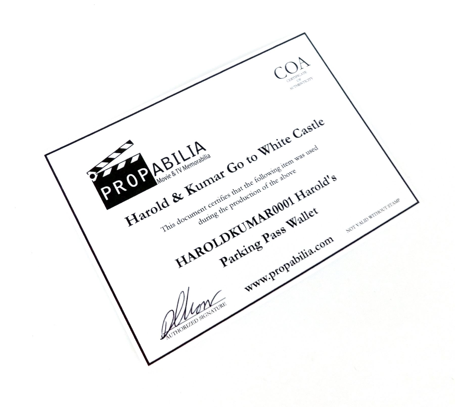 This parking pass was acquired by the production for use in 'Harold & Kumar Go to White Castle' (New Line Cinema, 2004).