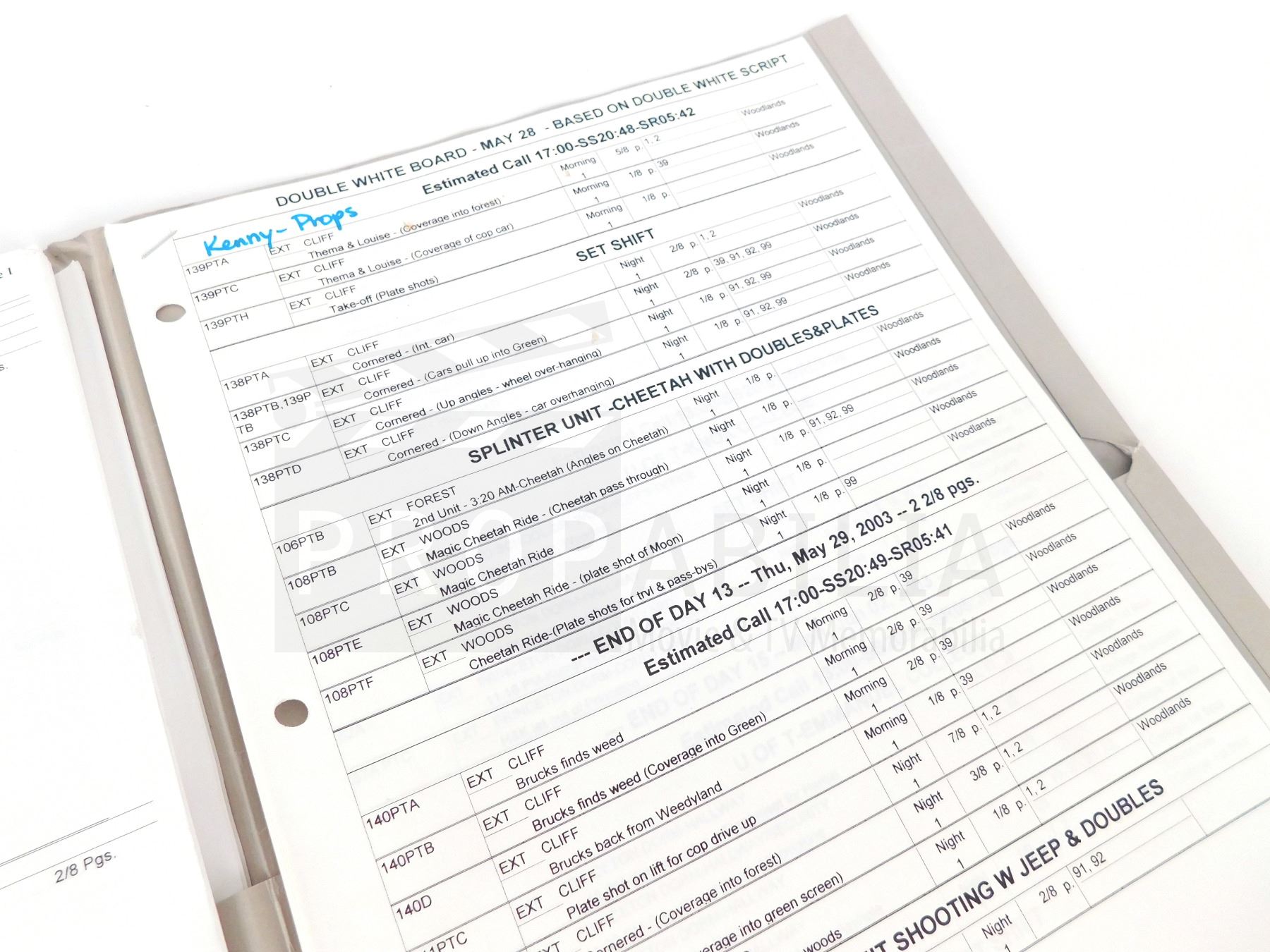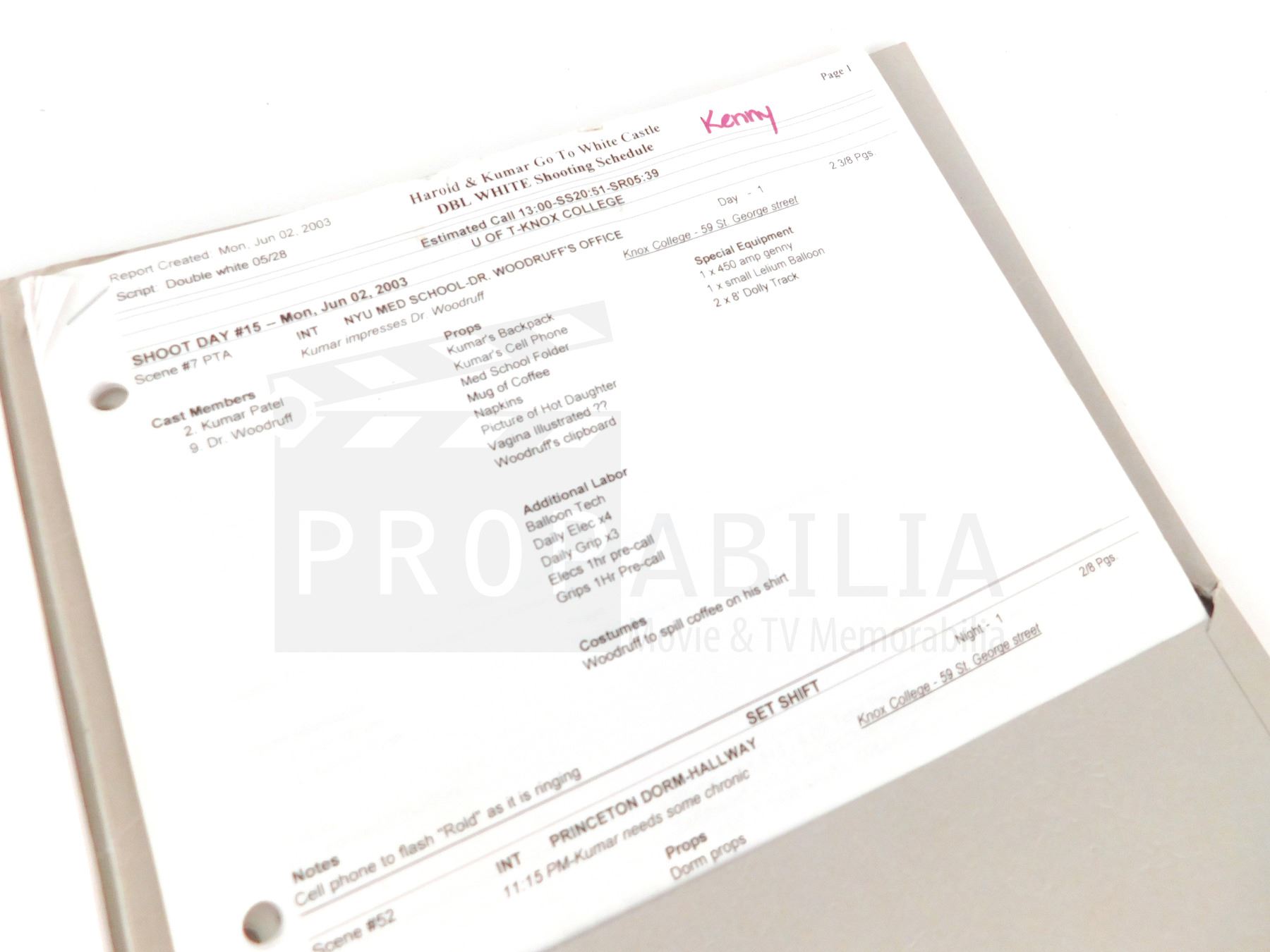 This schedule was acquired by the production for use in 'Harold and Kumar Go to White Castle' (New Line Cinema, 2004).