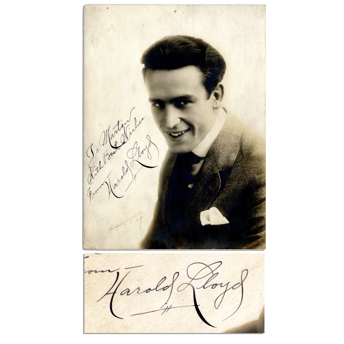 Harold Lloyd Signed 5.75'' x 8'' Matte Photo -- ''To Martin With Best Wishes From Harold Lloyd'' -- Very Good