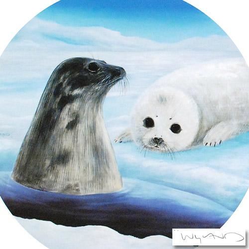 Harp Seals is a SOLD OUT Limited Edition Lithograph by celebrated artist Wyland, Numbered and Hand Signed with Publisher's Certificate of Authenticity! Measures appx. 18" x 20" (border); 16" (image diameter).