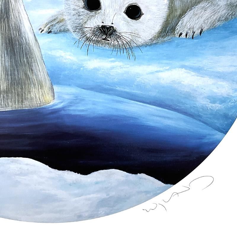 "Harp Seals" is a limited edition lithograph on paper by Wyland from a Sold Out edition, numbered and hand signed by the artist. Includes Letter of Authenticity. Measures approx. 18" x 20" (border), 16" (image-diameter).