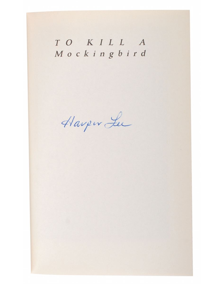 Signed book: To Kill a Mockingbird. 40th anniversary edition. NY: HarperCollins, 1999. Hardcover with dust jacket, 5.75 x 8.25, 323 pages. Signed on the half–title page in blue ballpoint. In very fine condition.