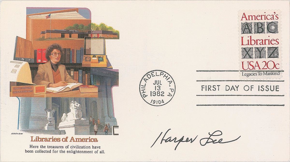 FDC with a cachet honoring the Libraries of America, postmarked July 13, 1982, signed in black ink. In fine condition.