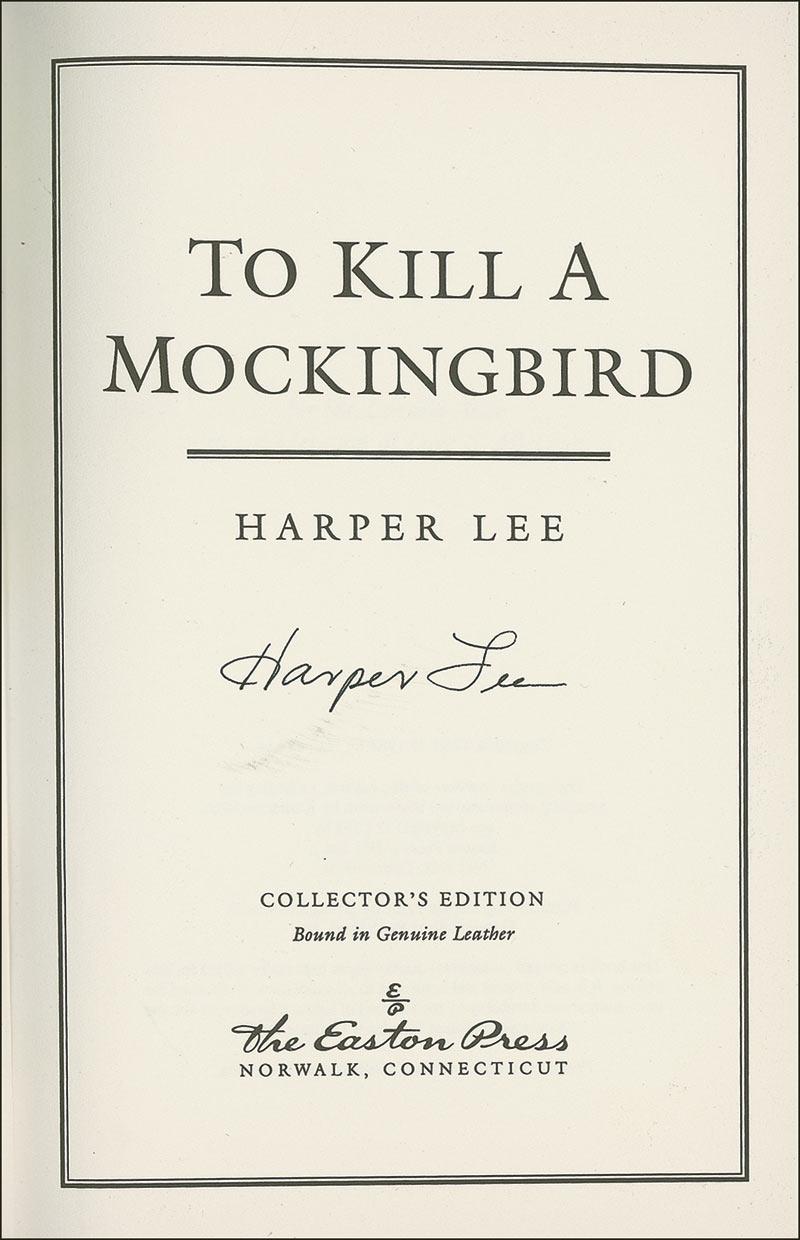 Signed book: To Kill a Mockingbird. Special collector’s edition edition, first printing. Connecticut: Easton Press, 1988. Leatherbound hardcover, 6 x 9, 296 pages. Signed on the title page in black ink. In very fine condition. Pre-certified PSA/DNA and RRAuction COA.