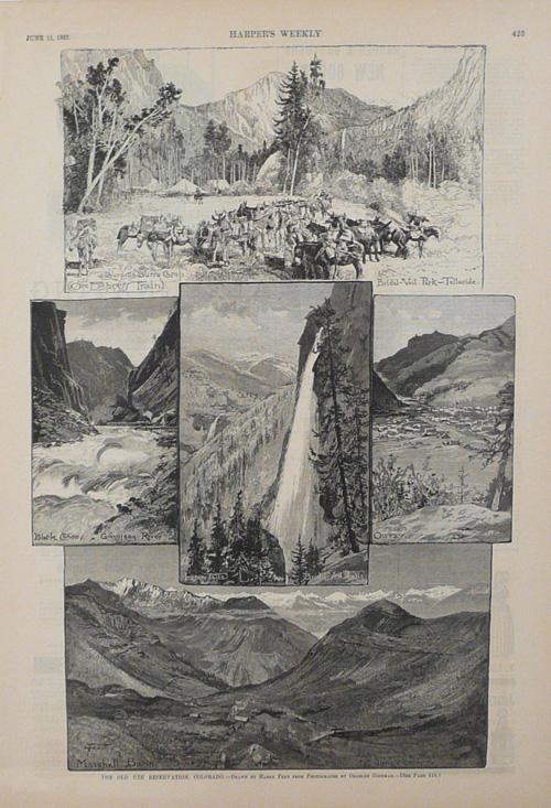 Harper's Weekly Illustration Original woodcut printed "The Old Ute Reservation, Colorado" June 11, 1887 15 1/2" x 10 1/2" (Sale of this item will benefit Palmer Land Trust)
