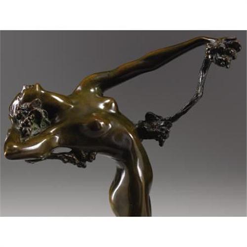 <B>HARRIET WHITNEY FRISHMUTH </B></I>(American 1880-1980)<BR><I>The Vine</B></I>, 1921<BR>Bronze with brown patina<BR>11-3/4 inches (29.8 cm) high<BR>Inscribed: <I>© / 1921 / Harriet W. Frishmuth</B></I><BR>Foundry mark:<I> Gorham Co. Founders / QBWS</B></I><BR> <BR>Provenance:<BR>James Graham & Sons, New York, New York;<BR>Private Collection, Dallas, Texas<B>Condition Report:</B> Overall very good condition<BR><BR><b>Shipping:</b> Requires 3rd Party Shipping (<a target="_blank" href="http://www.heritageauctions.com/common/shipping.php">view shipping information</a>)