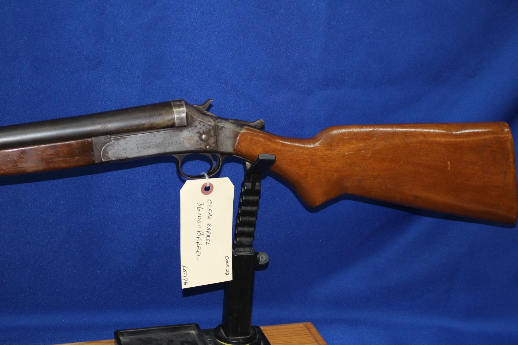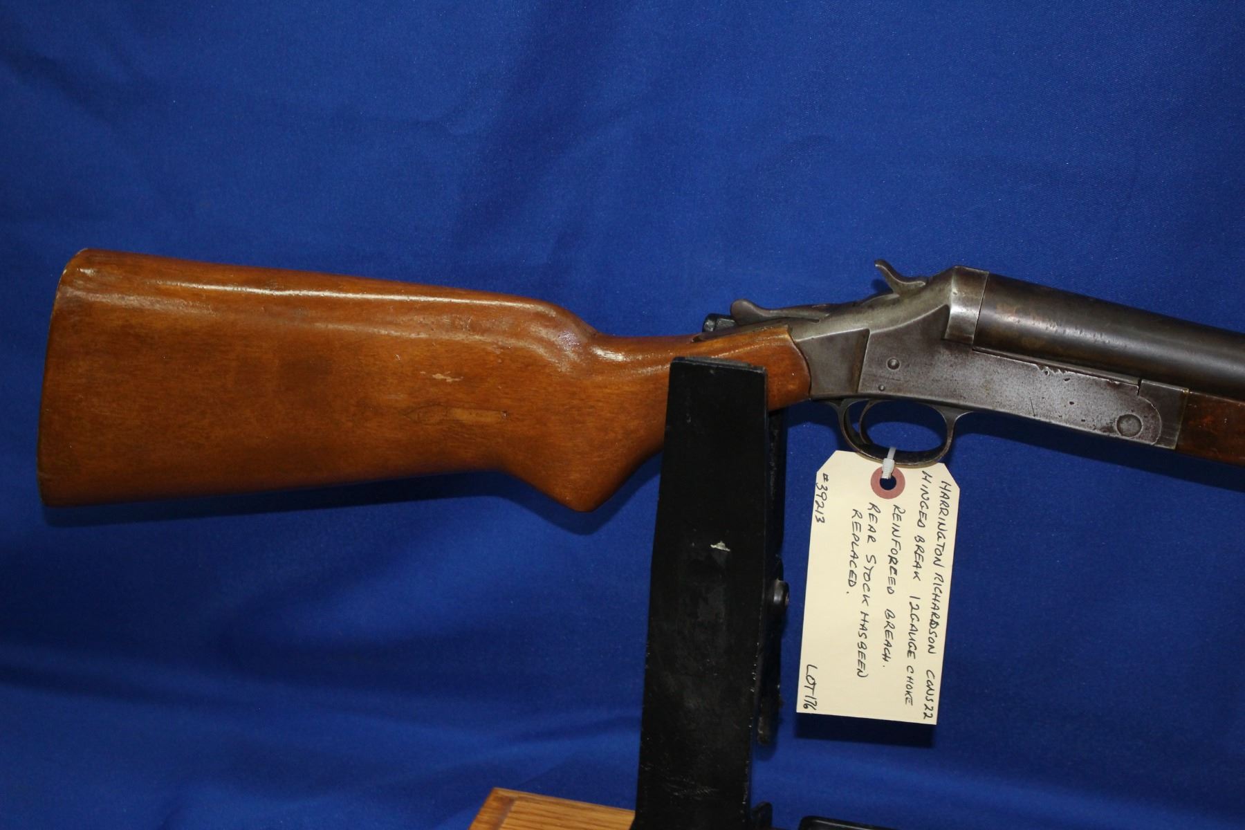 12 ga.; Choke; Hinged Break; Re-enforced Breach; Rear stock has been replaced; 36" Barrel; S/N 39213