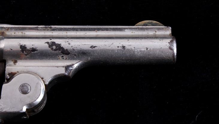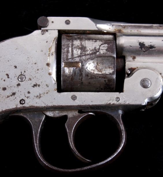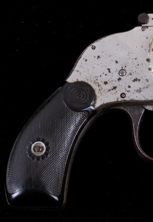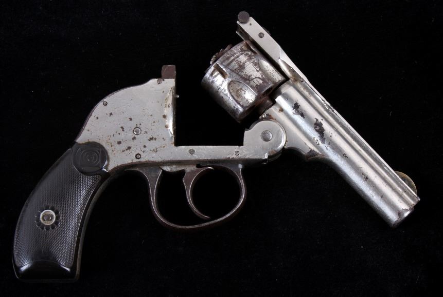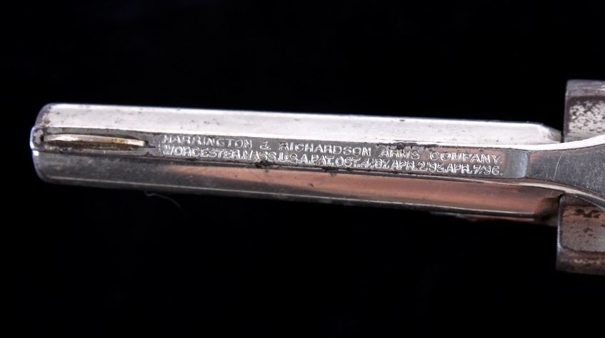 For sale in this lot we have a Harrington & Richardson Hammerless double action revolver chambered for a .32 caliber. The revolver features a 3" barrel, five-shot break top cylinder, hard rubber checkered grip, internal hammer, nickel finish, and fixed sights. The revolver is marked "HARRINGTON & RICHARDSON ARMS COMPANY - WORCESTER. MASS. U.S.A. PAT. OCT. 4. 87. APR. 2. 95. APR. 7. 96." on the top of the barrel. The revolver shows good condition overall, with bright bores, with good nickel finish, and very good rubber fixtures - the finish shows wears and nicks on the barrel and frame. Mechanically the revolver is in good condition with a tight action and a good cylinder lock. The revolver is classified as a Curio & Relic Handgun, and requires FFL Transfer or NICS Background Check. Serial number: 5262