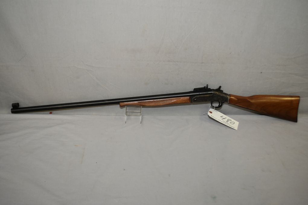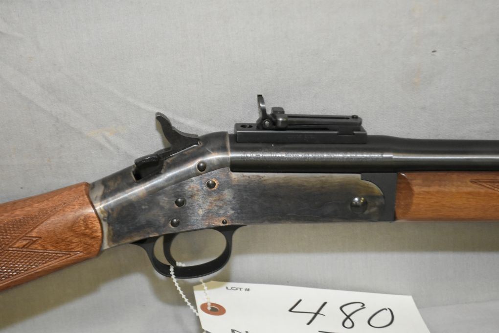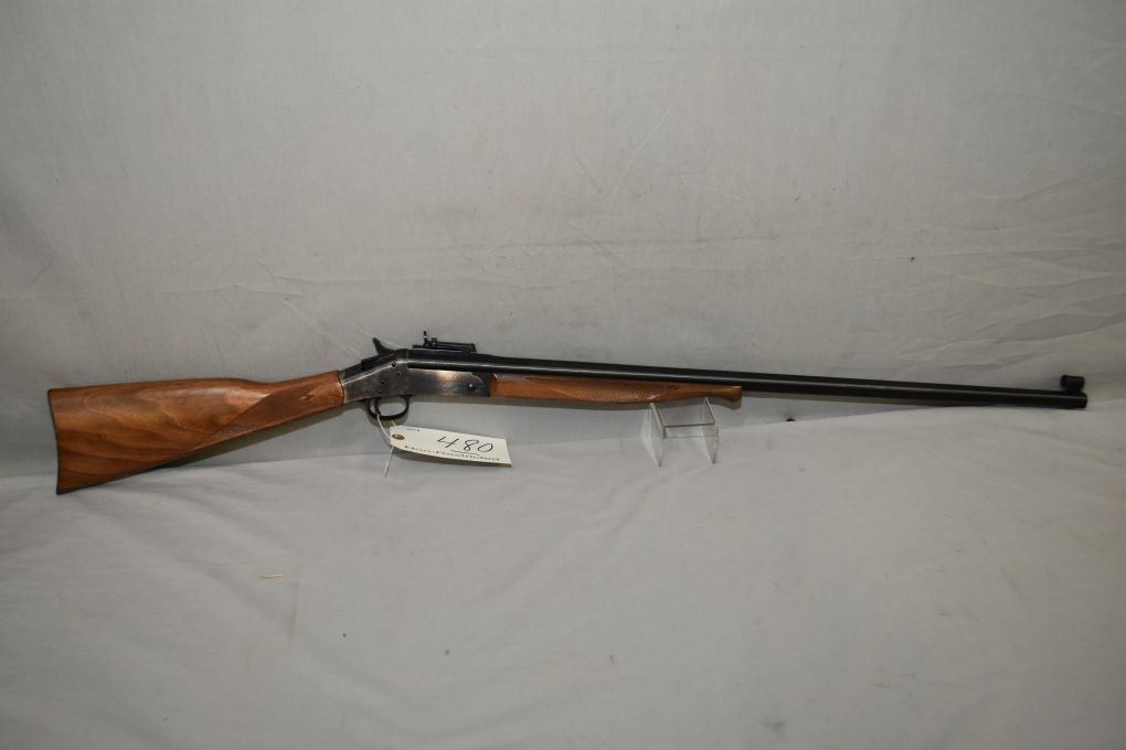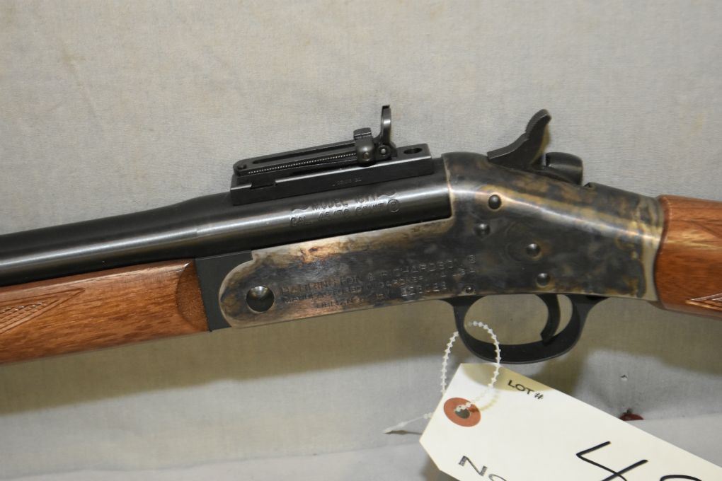 Harrington & Richardson Model 1871 .45 - 70 Govt Cal Single Shot Break Action Target Rifle w/ 32" bbl [ blued finish, 1873 Marked Smith Ent. rear sight, hooded target sight , appears excellent, blued finish, case colored receiver & butt plate, straight checkered stock & forend ] Ser # HV 223028