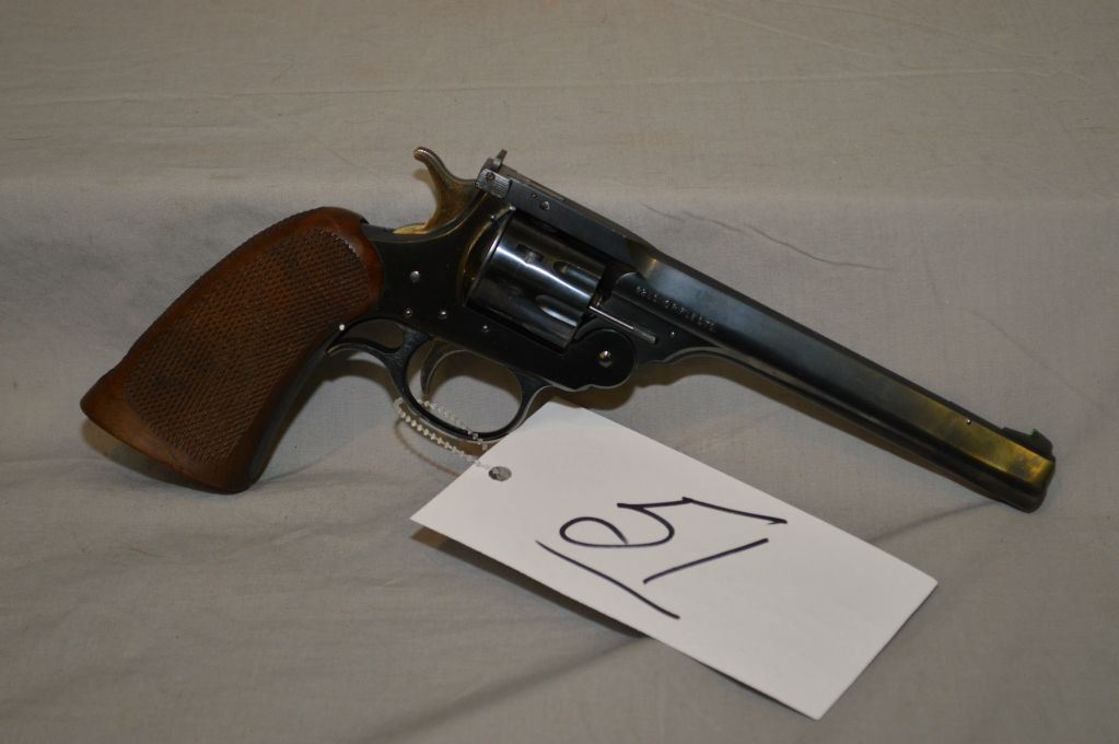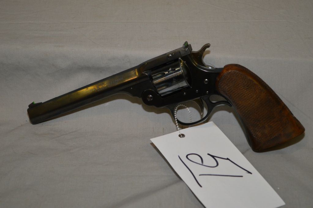 Harrington & Richardson Model Sportsman Single Action .22 LR Cal 9 Shot Revolver w/ 152 mm bbl [ appears v-good, blued finish, flourescent green dot sights, one piece checkered walnut grip, slight cylinder ring ] Ser # S10022 Restricted Handgun Cert # 18263694