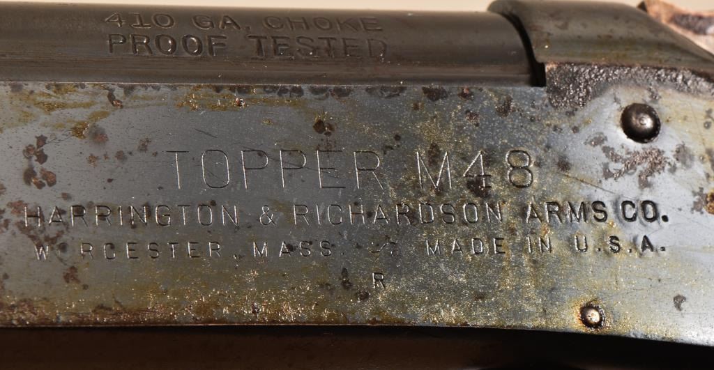 H&R Topper M48 single-shot .410 gauge. 28" barrel with some surface rust, bore is good.
