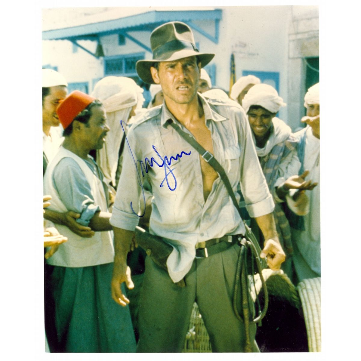 Color glossy 8 x 10 photo of Indiana Jones, signed in-person in blue felt tip. In very fine condition