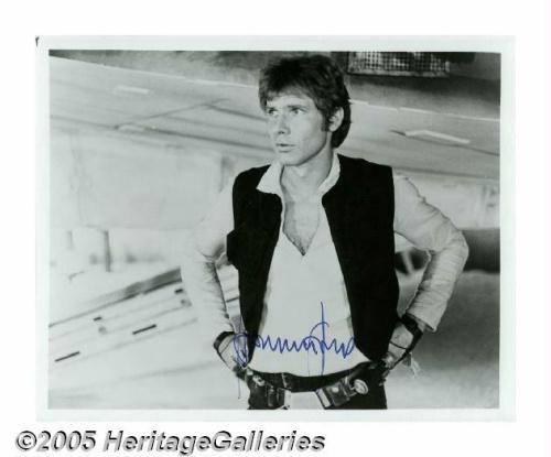 <B>Harrison Ford Signed Photograph.</B></I> A signed 8" x 10" publicity portrait of Harrison Ford in one of the roles that made him world famous, that of dashing smuggler Han Solo in "Star Wars," the movie franchise that launched a thousand space operas. <I>With COA from PSA/DNA.</B></I>