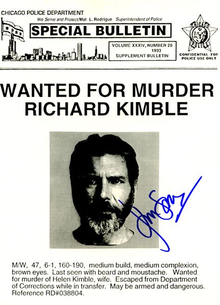 Prop wanted poster from Harrison Ford film and signed later by Ford in person.  This item comes with a certificate of authenticity good for the life of the piece.