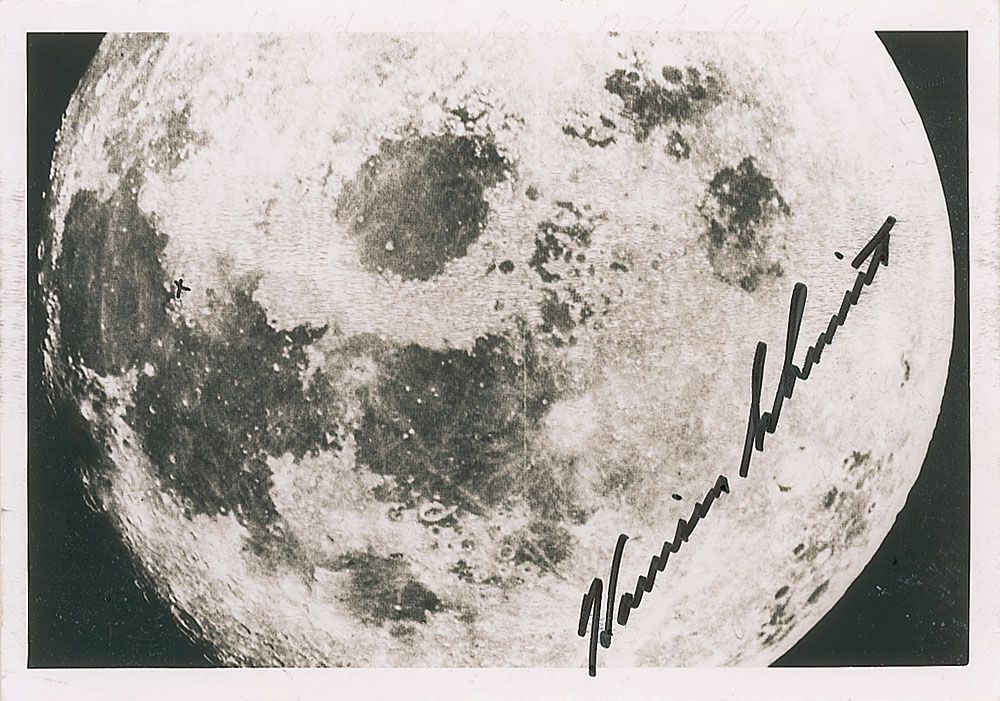 Matte-finish 5.75 x 4 photo of the moon, signed in black felt tip. In fine condition.
