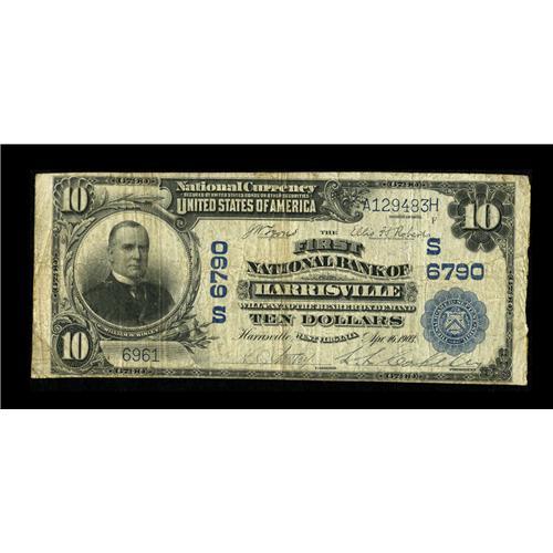 <B>Harrisville, WV</B></I> - $10 1902 Plain Back Fr. 624 <B>The First NB</B></I> Ch. # (S)6790<BR>This is one of 4 large notes documented for this charter number. We show only three appearances at public auction since 1990. <B>Fine.</B></I><BR><BR><b>Shipping:</b> Coin/Currency (<a target="_blank" href="http://www.heritageauctions.com/common/shipping.php">view shipping information</a>)