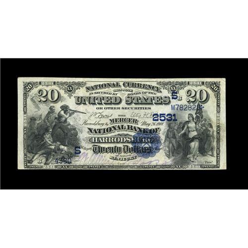 <B>Harrodsburg, KY</B></I> - $20 1882 Date Back Fr. 555 <B>The Mercer NB</B></I> Ch. # (S)2531<BR>A high grade example which is both new to the census and better than any Second or Third Charter listed there. Sharp <B>Extremely Fine.</B></I>