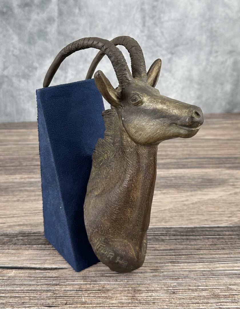 Made for Cal Todd by Harry. 7 1/8" tall, 5" deep, 3 5/8" wide. Provenance: Harry Andrew Jackson Estate. Harry Andrew Jackson (1924 - 2011) was active/lived in Wyoming, Illinois. Harry Jackson is known for Sculpture-western figure, horses. Born with the name Harry Shapiro on the South Side of Chicago, Harry Jackson became a well-known 20th-century artists whose wide-ranging work includes painting and sculpture and styles ranging from Abstract Expressionism to Realism. He was raised in a family where his mother ran a cafe near the Stockyards, and his father was a drunken, violent man. Jackson was often a truant from school and loved to wander around the Harding Museum looking at Frederic Remington bronzes or to hang out at his mother's cafe listening to stories from the cowboys who had brought their cattle by trains to the stockyards. A teacher noticed his art talent and got him a scholarship to the Chicago Art Institute's Saturday children's classes. At age 14, he ran away from home to Wyoming where he worked at a lumber company and on a ranch. He regarded these experiences as his spiritual awakening, and his art talents were reinforced by praise from his cowboy peers. In the late 1930s, he returned to Chicago and studied at the Frederick Mizen Academy, The Chicago Academy of Fine Arts, and The Chicago Art Institute. In 1942, he entered the Marine Corps and became close to a man who introduced him to the classics of literature. In 1943, at Tarawa, he had shrapnel head wounds that caused him epileptic seizures for most of the remainder of his life, and he also took two bullets to the leg at Saipan. He was then, at age 20, ordered back to the U.S. where he was appointed an Official Marine Corps Combat Artist, the youngest in Marine history. Following discharge, he worked as a radio actor and went to New York with the idea of meeting his hero, Jackson Pollock, whom in 1948 he found to be "a beautiful fantastic man." The two formed a lasting friendship, and Pollock introduced Jackson to Abstract Expressionism, which helped Jackson express his troubled background. Jackson married artist Grace Hartigan, his first of six wives, at Pollock's home with Pollock serving as best man. He also took classes at the Brooklyn Museum and studied with Rufino Tamayo and Hans Hofmann. The newlyweds went to Mexico and further explored abstraction, and a year later the couple divorced. Jackson did scenery painting for theatre and television, headed to Europe, and returned to New York where he did portrait painting and began to break away from Abstract Expressionism, something that met with disapproval from his peers. He had a Fulbright Travel Scholarship, did some heroic paintings in Denmark, and added sculpting to his repertoire, a medium inspired on March 4, 1958 when he arrived in Peitrasanta, Italy, where a new foundry gave him space. He remained in Italy for several years. In 1966, his entire output of western art was given the first one-man show at the new National Cowboy Hall of Fame in Oklahoma City. By 1970, he was spending most of his time in Wyoming, becoming a resident of Cody, and was elected to the Cowboy Artists of America, but got "thrown out" because of his refusal to choose allegiances between it and the Cowboy Hall of Fame--entities that had had a major falling out.