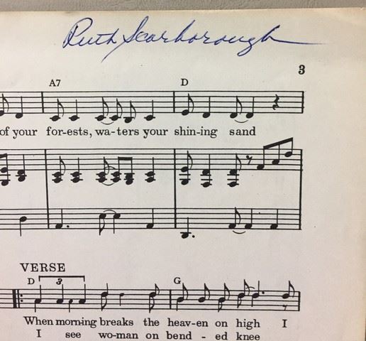 Sheet music, with digital signature of Harry Belafonte on the cover, of his song "Island in the Sun".