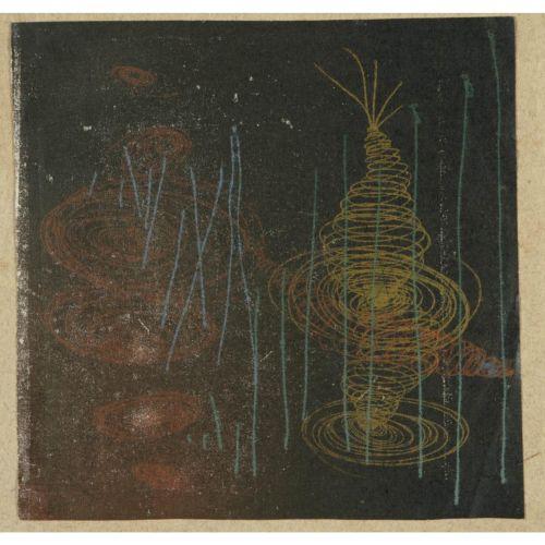 Artist Name: Harry Bertoia<BR>Manufacturer: <BR>Description: Monoprint (XV1.1)<BR>Circa: Executed 1945-1947<BR>Medium: Colored inks and oils on heavy map paper<BR>Signature: Label on verso of mat "Nierendorf Gallery"<BR>Measurements: 6.5"h x 6.5"<BR>Editi