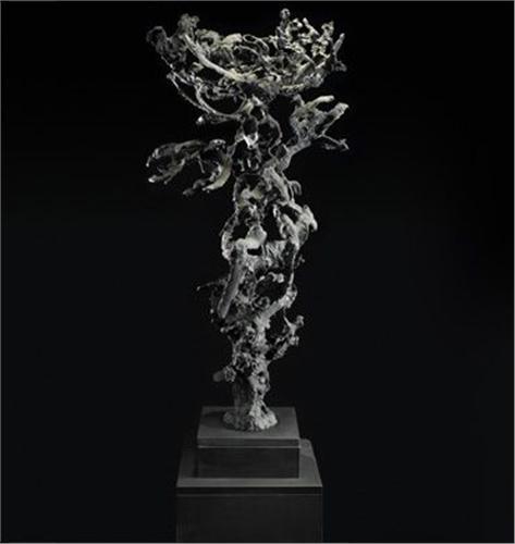 Harry Bertoia Untitled #5 (Spill Cast) USA, 1960 bronze with applied patina 21 w x 16 d x 42 h inches Sold with polished black slate pedestal, 14 x 14 x 40, and original bill of sale with transparency. Provenance: B.E. Bensinger, Chicago Private collection, Chicago Exhibited: Ravinia Festival Association Art Festival, Highland Park, Illinois, August, 1961 <i>Harry Bertoia</i>, Fairweather Hardin Gallery, Chicago, Illinois, June, 1975