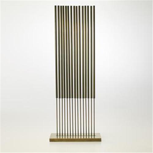 Harry Bertoia<BR>untitled (Sonambient)<BR>USA, c. 1965<BR>beryllium copper, brass<BR>6 w x 2.75 d x 15.75 h inches<BR>This work is composed of fifteen rods with long tops in a single row. Sold with original rendering of this form signed by Harry Bertoia.<BR><BR>Condition of the item is not included in this description. Condition reports are available from Wright upon request. Wright strongly recommends that you review a condition report for each item on which you plan to bid.