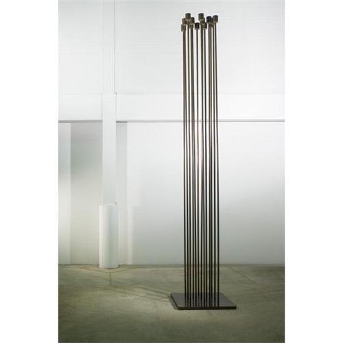 Harry Bertoia<BR>untitled (Sonambient)<BR>USA, c. 1970<BR>beryllium copper, bronze<BR>36 w x 36 d x 183.5 h inches<BR>This 15-foot sonambient sculpture, featuring thirteen rods with heavy ends in a staggered composition, creates a deep and resonating bellow reminiscent of cathedral bells. <BR>Provenance: <BR>Private collection, Norway | Robert Miller Gallery, New York | Private collection, Michigan<BR><BR>Condition of the item is not included in this description. Condition reports are available from Wright upon request. Wright strongly recommends that you review a condition report for each item on which you plan to bid.