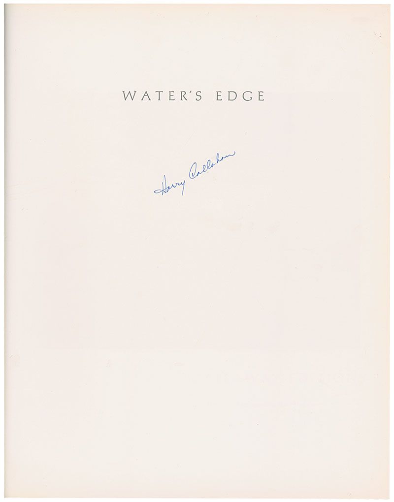 Signed book: Water’s Edge. First edition. Connecticut: Callaway Editions, 1980. Hardcover with dust jacket, 11 x 13.75. Signed on the half-title page in blue ink. In fine condition, with some mild toning to front pastedown and some light creasing to dust jacket.
