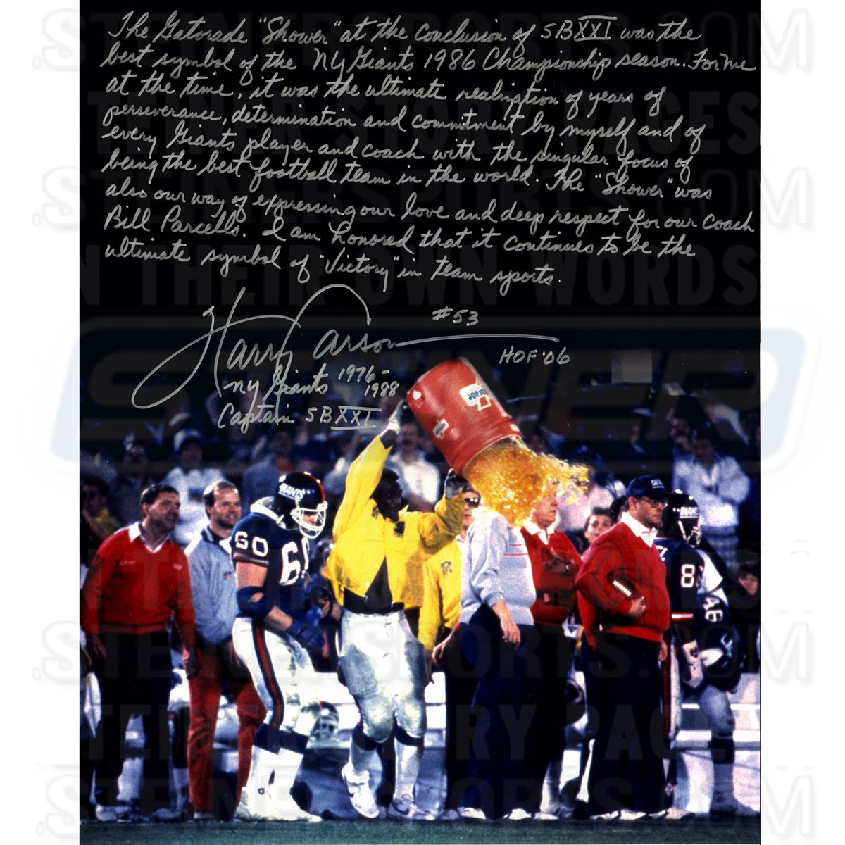 Harry Carson Gatorade Signed 16x20 Story Photo