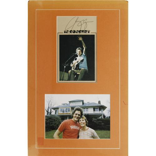 <B>Harry Chapin Autograph with Photo.</B></I> A promo flyer signed by the late singer-songwriter in black ink, matted along with a color photo to an overall size of 12" x 18". In Excellent condition with some fading to the top and left edges of the matte. <I>Accompanied by LOA from PSA/DNA.</B></I>