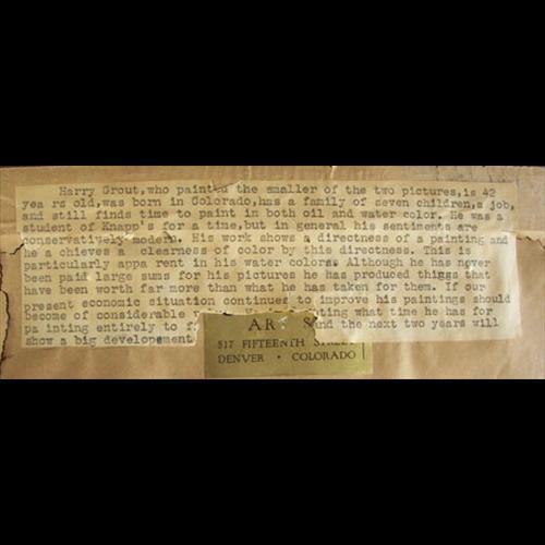 Harry Grout (Colorado) Oil on Board, "Pikes Peak", 10" x 8", unsigned, letter attached verso