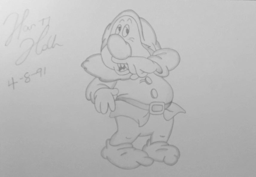 During that time, many a Disney fan would delight in getting a drawing done by Harry. The pencil drawings were of Peter Pan battling Captain Hook, Lady and the Tramp dining out, Snow White dancing with the Seven Dwarfs, Bambi surrounded by his friends, Cinderella, Pinocchio or even Ariel and others.