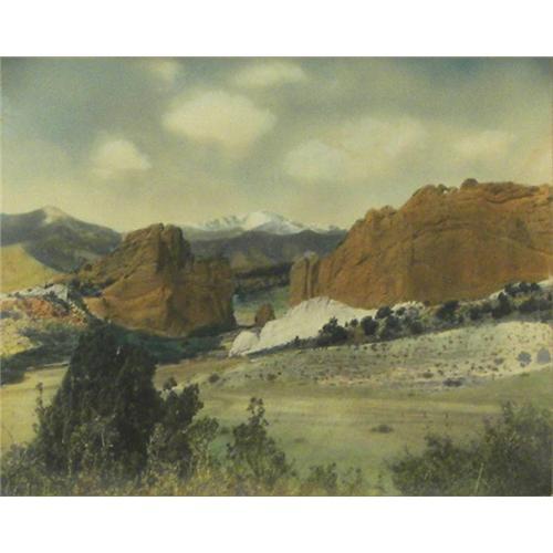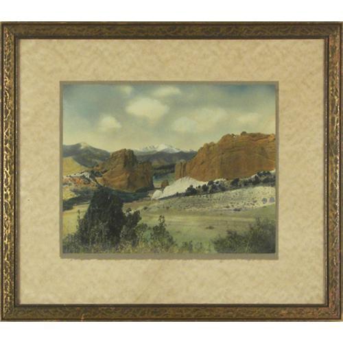 Harry Landis Standley (1881-1951) Hand Colored Photograph, "Pikes Peak & Gateway, Garden of the Gods, Colorado", 7 1/2" x 9 3/8", signed on matt