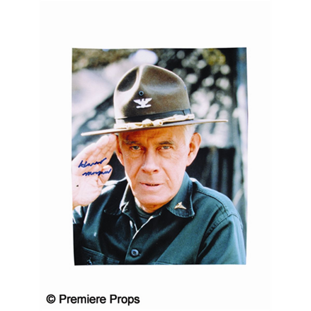 Color photo of Harry Morgan from MASH, signed by the actor in blue felt pen. (8x10)