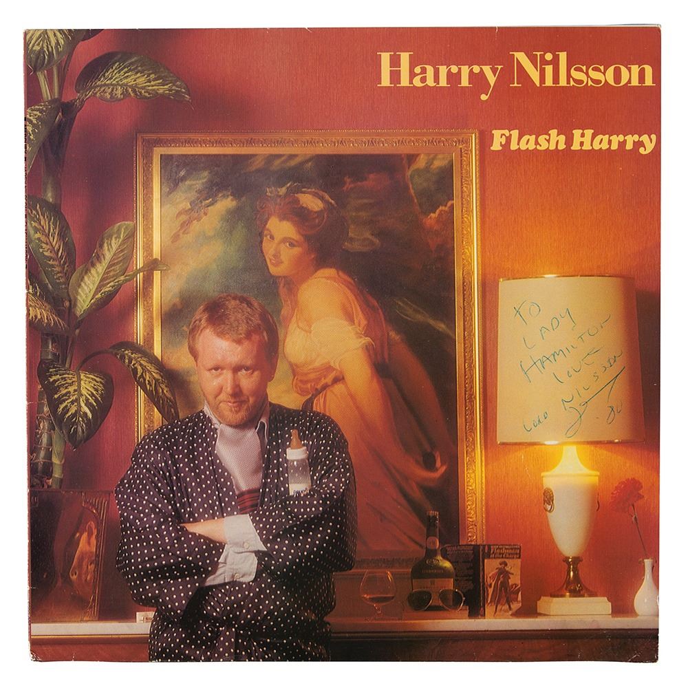 Flash Harry album signed and inscribed in blue ballpoint, "To Lady Hamilton, love Lord Nilsson." In fine condition. The record is included. A scarce signed example of Nilsson's last full album.