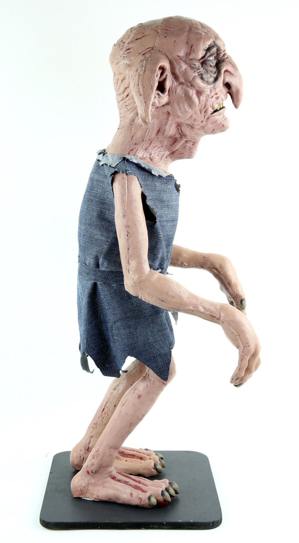Harry Potter - A freestanding life size display prop of Kreacher. The figure is made of a solid inner skeleton structure with hand-painted padded rubber latex outer skin and hand-painted acrylic eyes, fixed onto a wooden base. Stands approximately 80cm tall.